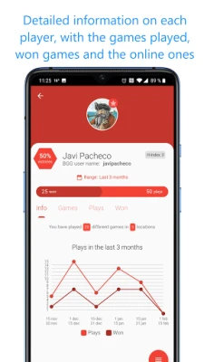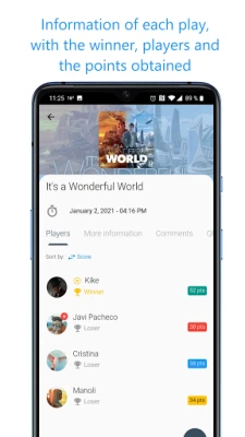 Duboki uvid u vaše igračke navike i performanse je na dohvat ruke. Pratite statistiku o ukupnom broju odigranih partija, otkrijte koje igre najčešće birate i vizualizujte svoj napredak uz mesečne grafikone odigranih i dobijenih partija. Dodajte prilagođene fotografije svakom igraču i jednostavno uporedite dva igrača da biste otkrili ko ima bolji skor. Ovekovečite svoje pobede i delite slike sa rang-listama direktno na društvenim mrežama, dok deljenje detalja o igri ili partiji putem QR koda omogućava drugim igračima da ih odmah dodaju na svoje liste.
