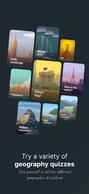 Proširite svoje znanje geografije! Uživajte u raznovrsnim kvizovima i zanimljivim izazovima koji testiraju vaše poznavanje sveta. Aplikacija nudi i obilje korisnih informacija o svim zemljama, savršenih za učenje i zabavu.