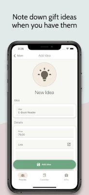 Više nikada nećete izgubiti savršenu ideju za poklon. Čuli ste prijatelja kako priča o nečemu što je oduvek želeo? Videli ste nešto što bi bilo idealno za nekoga dok ste u prolazu? Sa Gifts-om, imate posvećeno mesto za skladištenje svih vaših inspiracija. Samo zabeležite ideju na listi poklona, a Gifts će je čuvati i diskretno vas podsetiti na nju kada se sledeća prilika približi. To je kao da imate ličnog asistenta za pamćenje savršenih iznenađenja.