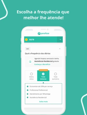 Korišćenje Parafuzo aplikacije je izuzetno jednostavno. Potrebno je samo da navedete broj soba i kupatila, željenu učestalost usluge (jednokratno, nedeljno ili dvonedeljno), zakažete termin online, a plaćate tek po obavljenoj usluzi. Nakon toga, Parafuzo pronalazi najbolje proverene profesionalce u vašoj blizini. Fleksibilnost je ključna: jednostavno menjajte termine, otkazujte ili preskačite usluge direktno iz aplikacije. Ako ste zadovoljni određenim profesionalcem, možete ga označiti kao preferiranog za buduće usluge. Naša podrška putem chata dostupna je sedam dana u nedelji za sva vaša pitanja i nedoumice. Parafuzo ponosno pokriva preko 200 gradova širom Brazila, čineći profesionalnu pomoć dostupnom gde god da se nalazite.