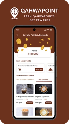 QahwaPoint je vaša vrhunska aplikacija za kafu. Naručite omiljeni napitak uz lakoću, prilagodite ga svom ukusu i iskoristite raznovrsne opcije plaćanja. Otkrijte obližnje kafiće i automate, unapredite svoje iskustvo ispijanja kafe. Jednostavno i brzo.
