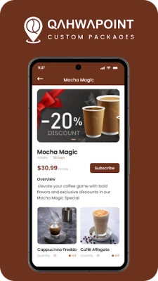 U srcu dinamičnog života modernog doba, kafa je više od napitka – ona je ritual, energija i predah. Qahwapoint je inovativna aplikacija osmišljena da preoblikuje vaše iskustvo uživanja u kafi, donoseći vrhunsku pogodnost, potpunu prilagodljivost i širok spektar opcija direktno na vaš dlan. Zaboravite na čekanje i komplikacije; Qahwapoint otvara vrata svetu kafe gde je svaka šolja savršeno skrojena po vašoj meri, uvek dostupna i naručena bez napora. Prepustite se jednostavnosti i otkrijte kako Qahwapoint može unaprediti svaki vaš trenutak uz omiljeni napitak.