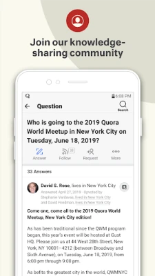 Aktivno učestvovanje u zajednici čini Quora iskustvo još potpunijim. Imate jedinstvenu priliku da podelite sopstveno znanje i perspektivu sa globalnom publikom, obogaćujući diskusije i pomažući drugima. Bilo da se radi o stručnim savetima, ličnim iskustvima ili temeljnim objašnjenjima, vaš doprinos je dragocen. Istovremeno, imate privilegiju da učite od eksperata i pojedinaca sa direktnim, iz prve ruke, saznanjima, gradeći mostove razumevanja i uvida.