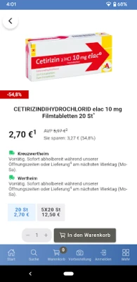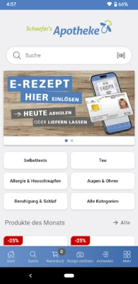 Korišćenje aplikacije je jednostavno i intuitivno. Svakog meseca očekuju vas atraktivne ponude sa značajno sniženim cenama popularnih artikala. Lako aktivirajte svoj e-recept skeniranjem zdravstvene kartice i dodajte sve potrebne proizvode bez recepta. Sami birate kako želite da primite svoju narudžbinu: direktno u jednoj od Schaefer's Apotheken filijala ili udobno isporučeno na vašu adresu. Brzina je ključna: ako naručite do 12 časova, vaša porudžbina je spremna za preuzimanje već od 16 časova (subotom od 15:30) ili stiže istog dana (osim subote). Za porudžbine do 15 časova, preuzimanje je moguće od 19 časova (osim subote) ili dostava narednog radnog dana.