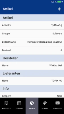 Uz TOPIX, sve informacije o vašim kompanijama i kontaktima su vam na dohvat ruke. Pregledajte sve adrese, centralne komunikacione podatke, direktno pozivajte brojeve, šaljite e-poštu dodirom na adresu, posetite veb-sajtove ili planirajte rute uz prikaz lokacije na mapi. Svaka firma obuhvata i detalje o anketnim osobama, beleškama, statusima, aktuelnim terminima, kao i sveobuhvatan pregled CRM unosa: beleške, prepiske, servisni tiketi, projekti, ponude, porudžbine, otpremnice i izlazne fakture. Otvaranje povezanih zapisa omogućava dubinski uvid, dok najnovije statistike prodaje sa grafičkim prikazima nude jasnu sliku uspeha.