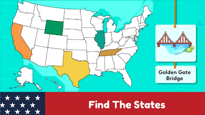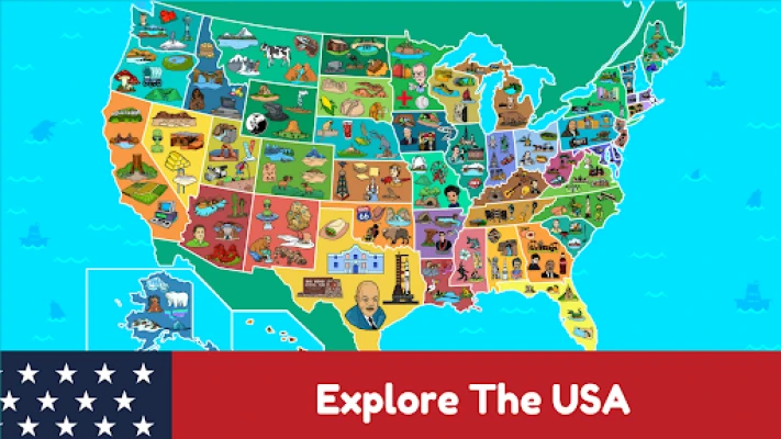 Predstavljamo "USA Map Kids Geography Games", zabavnu i edukativnu geografsku igru. Naučite sve o Sjedinjenim Američkim Državama. Istražite mapu SAD-a, gradove, države i glavne gradove. Učite kroz zabavne kvizove, rešavajte mape-slagalice i mini-igre, sve fokusirano na Ameriku.