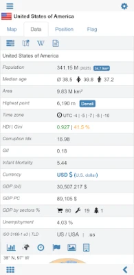 Proširite svoje geografsko znanje uz funkcije poput poređenja zemalja, kalkulatora rastojanja i svetskog sata sa prikazom vremenskih zona. Sa "Svetoistraživačem" možete otkriti najmanje, najveće, najbogatije i najnaseljenije zemlje. Uključene su i horopletne mape koje vizuelizuju podatke o temperaturi, površini, HDI-ju i stanovništvu, nudeći dubok uvid u globalne trendove. Bilo da se pripremate za putovanje ili samo želite da proširite svoje opšte znanje, "World atlas & world map MxGeo Pro" je vaš pouzdan izvor sveobuhvatnih informacija i statističkih podataka, uključujući rast stanovništva, stopu nezaposlenosti, prosečnu starost i bruto domaći proizvod.